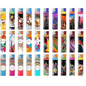 Pack de 25 Mecheros Redondos Recargables con Piedra Reemplazable Exclusivo EN DISPAU (RAVE)