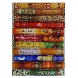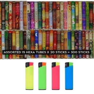 DISPAU Kit HEM - Selección de Incienso, 15 Cajas – 300 Varillas Incluye 4 Mechero BI Color Rubber Touch de Regalo