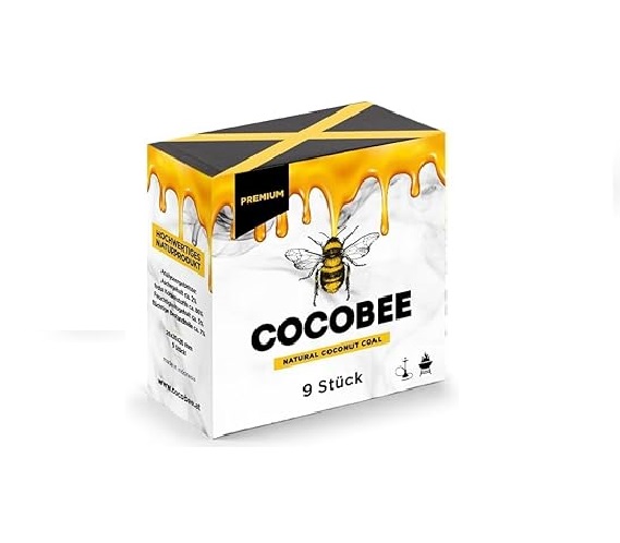 Black Coconut Carbón DISPAU COCOBEE Premium de 26 X 26 MM Carbón Natural de Coco Premium Cachimba y BBQ – Briquetas de Carbón de Coco Shisha y Barbacoas. (9 Unidad)