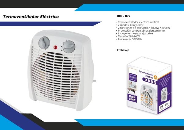 Calefactor Eléctrico de aire caliente Vertical Ancho | 2000W | Termoventilador | Calefactor Estufas Baño | Temperatura regulable | Protección Contra el Sobrecalentamiento |