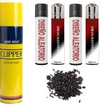 Clipper 4 Mecheros + 1 Botella Gas Azul 300 ml Gas Sirve para Recargar Soplete de Cocina + 9 Piedras de Mechero de Regalo Kit DISPAU Esencial