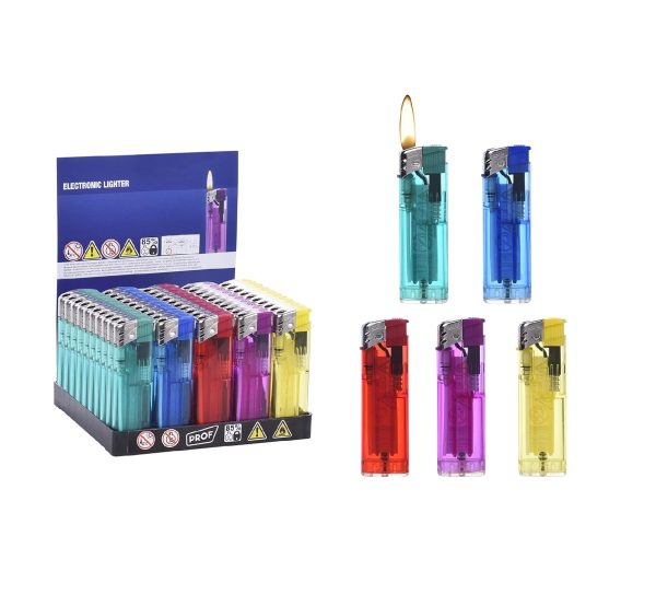 DISPAU 50 encendedores Electrónicos Prof Touch Rubber Tacto Goma 5 Colores Variados Fluorescentes con Llama Ajustable.