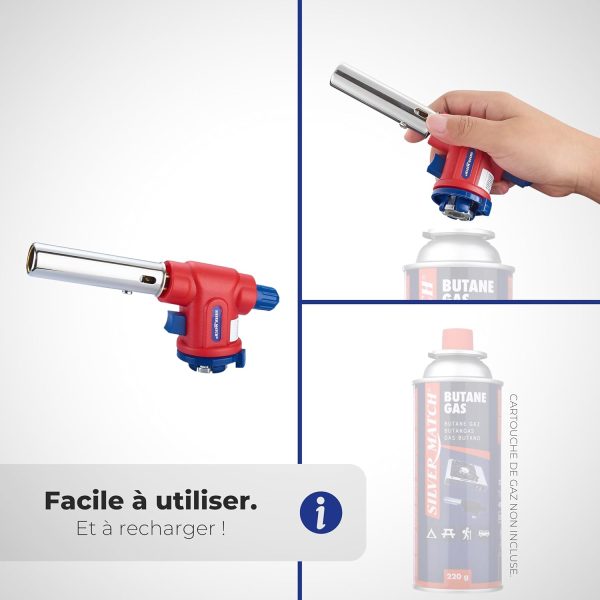 DISPAU presenta Soplete SM de cocina de gas, 1300°, lámpara de soldadura, antorcha multifunción, encendido rápido y seguro para cartucho de gas butano, ideal, pandeo (1 GAS EXTRA + 1 CABEZAL SOPLETE)