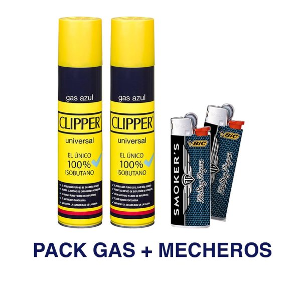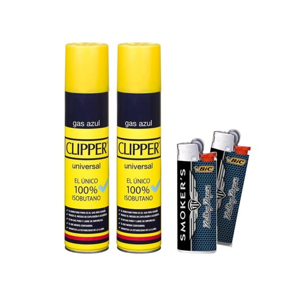 - [Contenido]: 2 botellas de Gas CLIPPER Azul de 300 ml + 2 Encendedores BIC “SMOKER’S” de Regalo