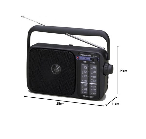 Panasonic RF-2400DEG-K – Radio Portátil FM/Am, (770mW, Iluminación LED, FM/Am, Fácil y Simple de Usar, Sintonizador Digital, Altavoz Amplio Rango 10 cm, Asa para Transportar) Color Negro [Clase de eficiencia energética A]