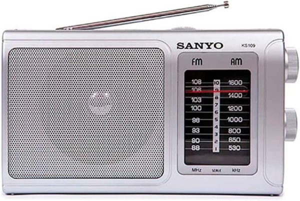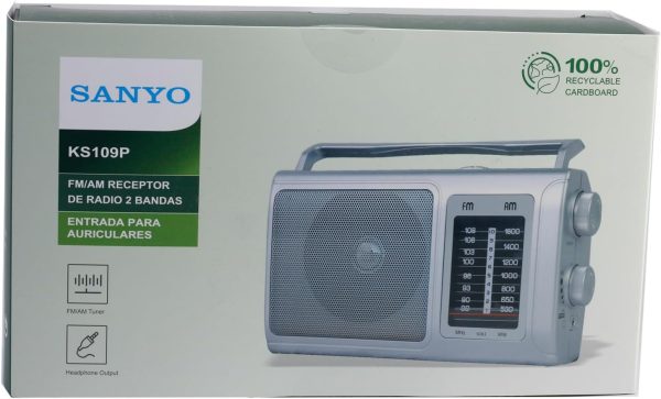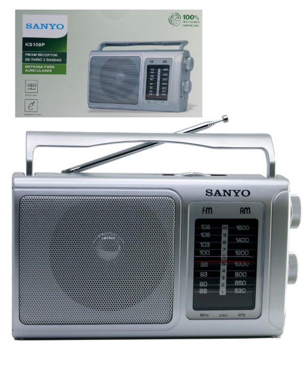 SANYO KS109P Radio Analógica Sobremesa Am/FM Red y Pilas. Color Plata